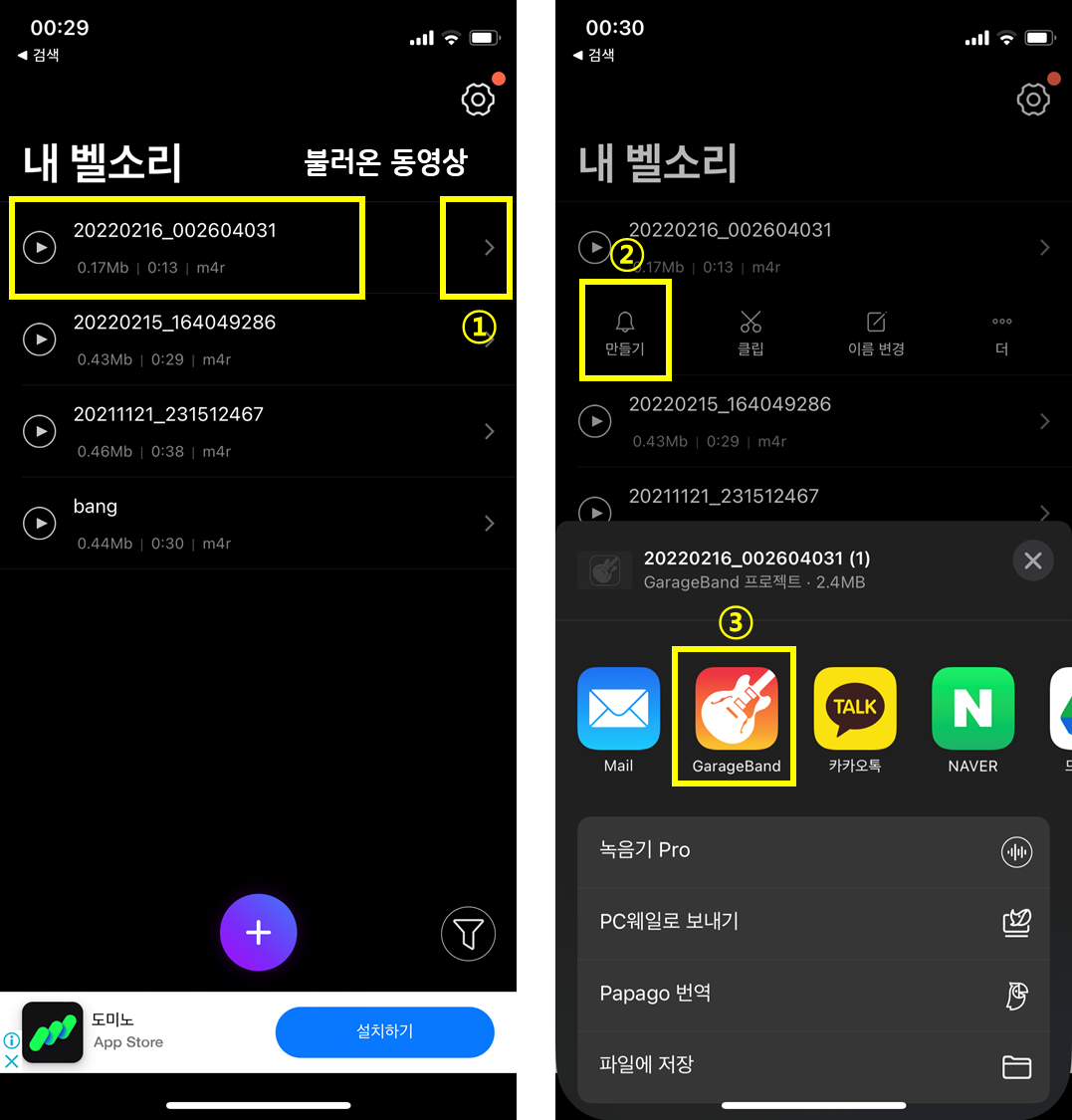 [필요한 어플 : 벨소리제작(Ringtone Maker) ✔️ , GarageBand ✔️]
